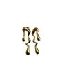 Aretes largos en acero inoxidable con acabado dorado y diseño fluido tipo “metal derretido”.