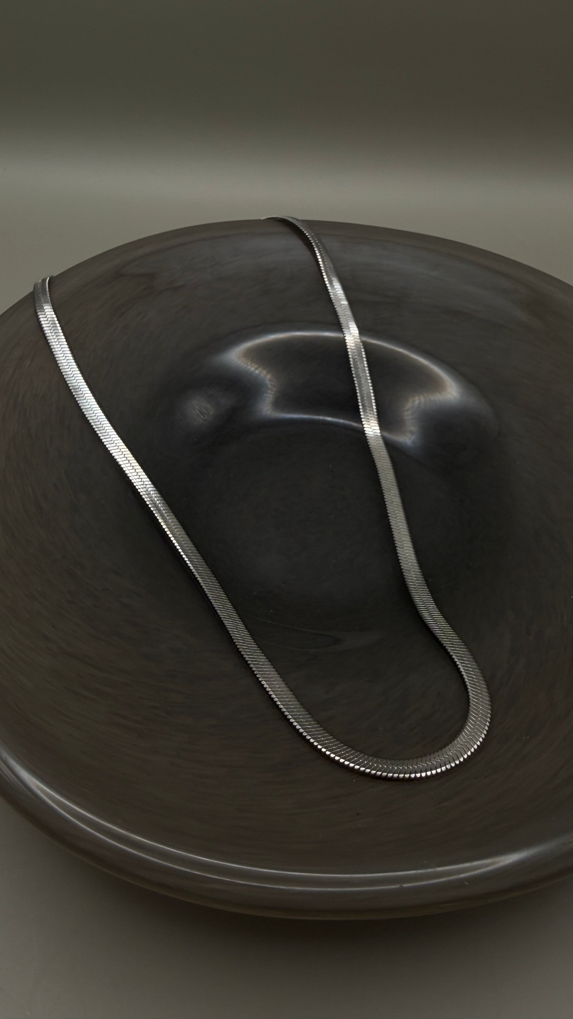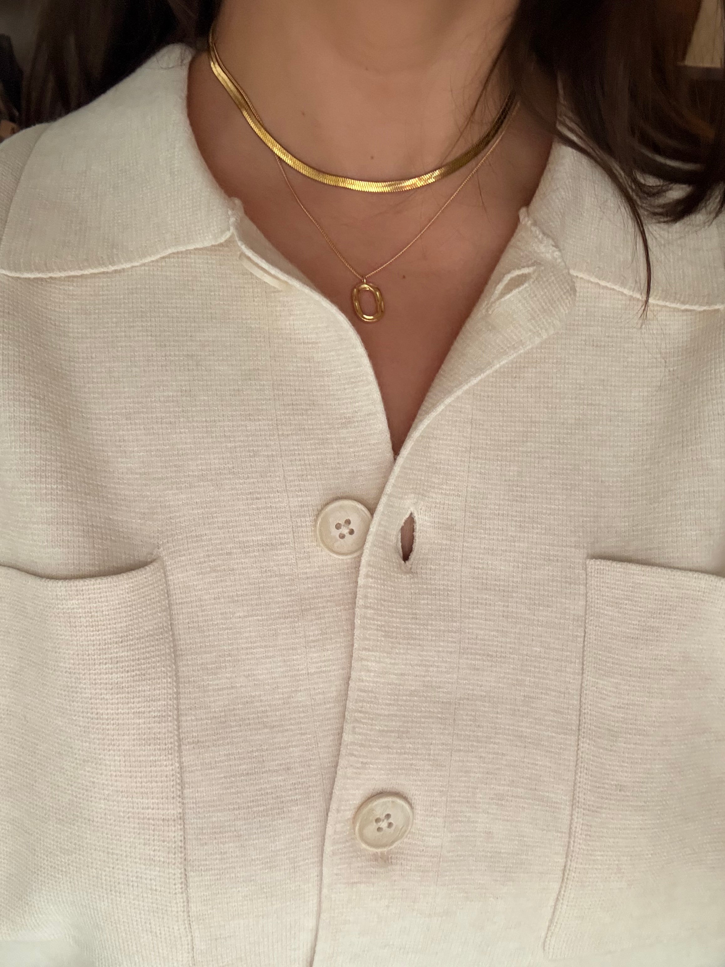 Cadena corta planchada de acero inoxidable resistente al agua disponible en dorado y plateado.