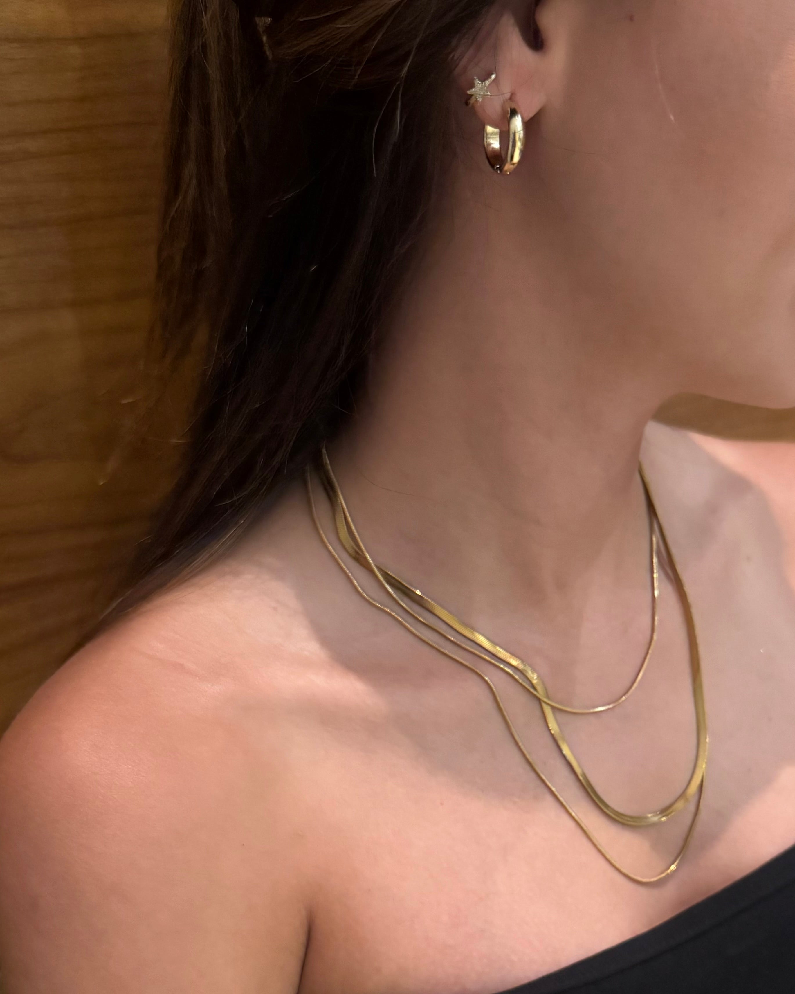 El acero inoxidable es duradero, hipoalergénico y resistente al agua, ideal para uso diario sin perder su brillo. Para cuidar tus accesorios evita el contacto directo con perfumes, cremas o cloro, limpia tus piezas con un paño suave y seco después de usarlas y guárdalas en un lugar seco y separado para evitar rayaduras.