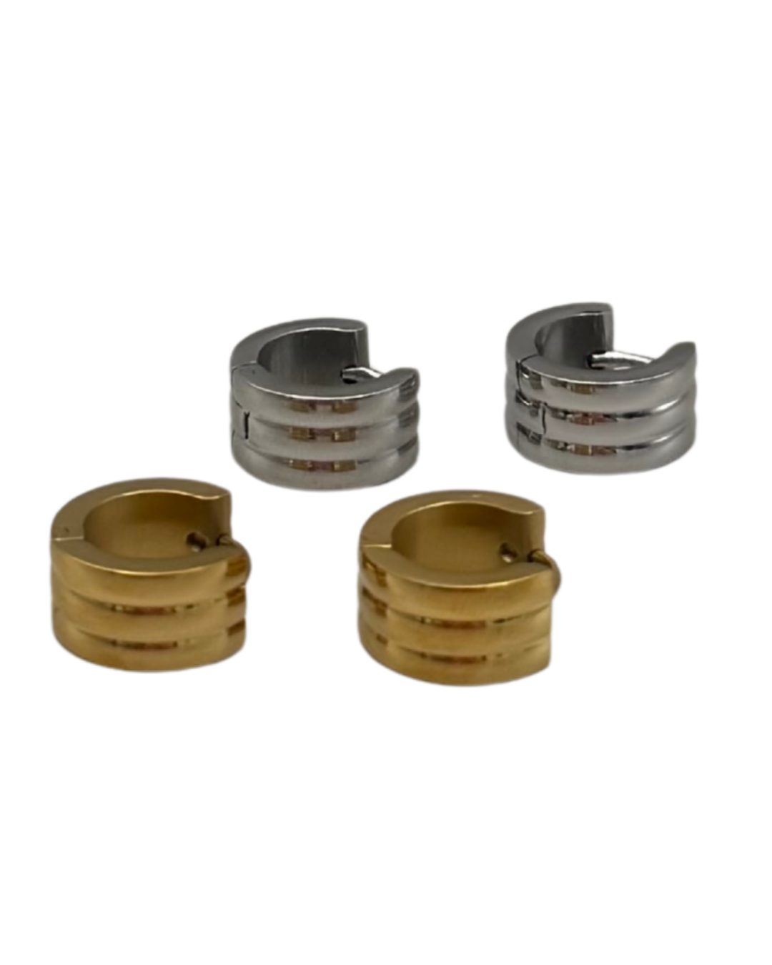 Aretes con líneas marcadas que crean textura y presencia. Minimalistas y perfectos para todos los dias.